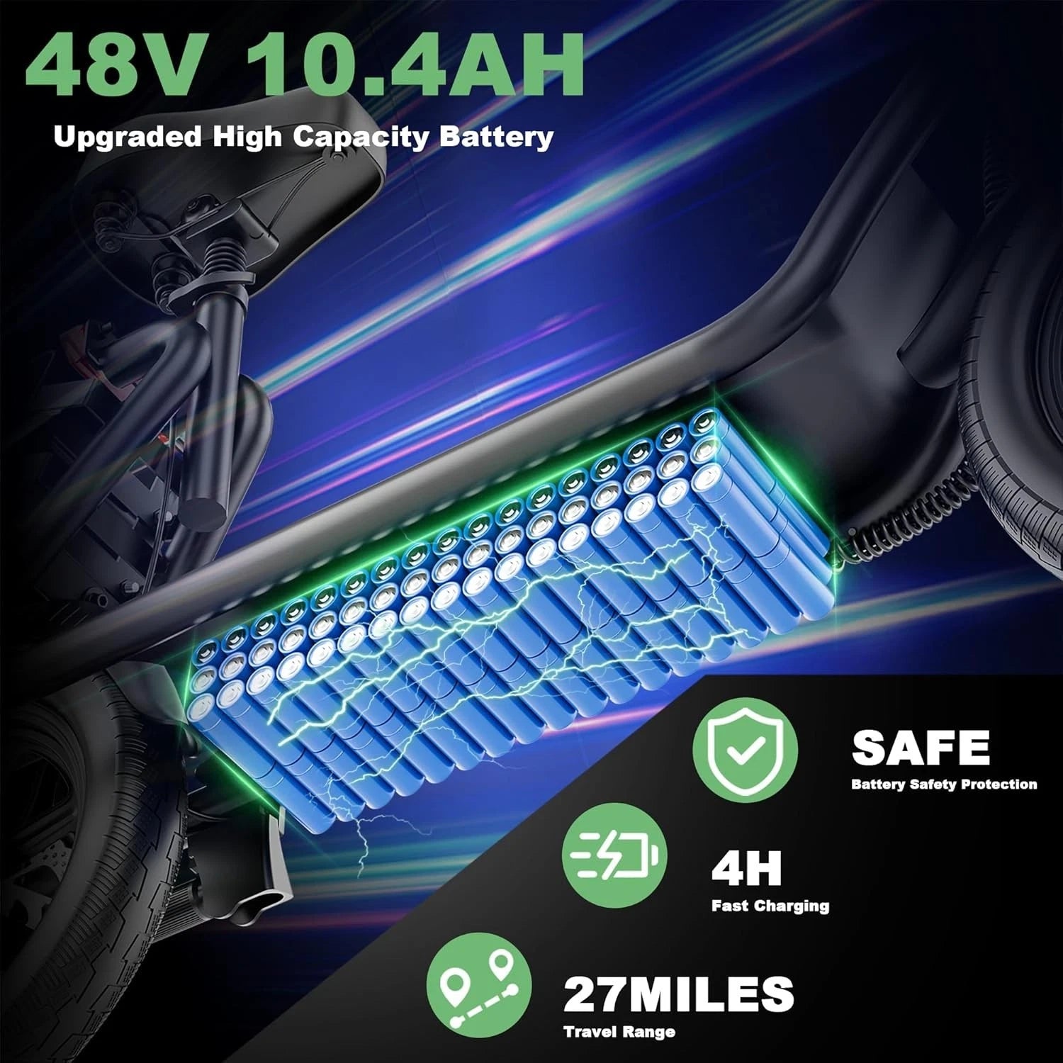 - - Long-lasting Battery Life: The 10.4Ah battery provides a range of 21-27miles.